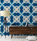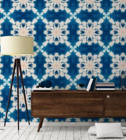 A trendy pattern, illustrating tie dyed fabric, in beautiful shades of blue.