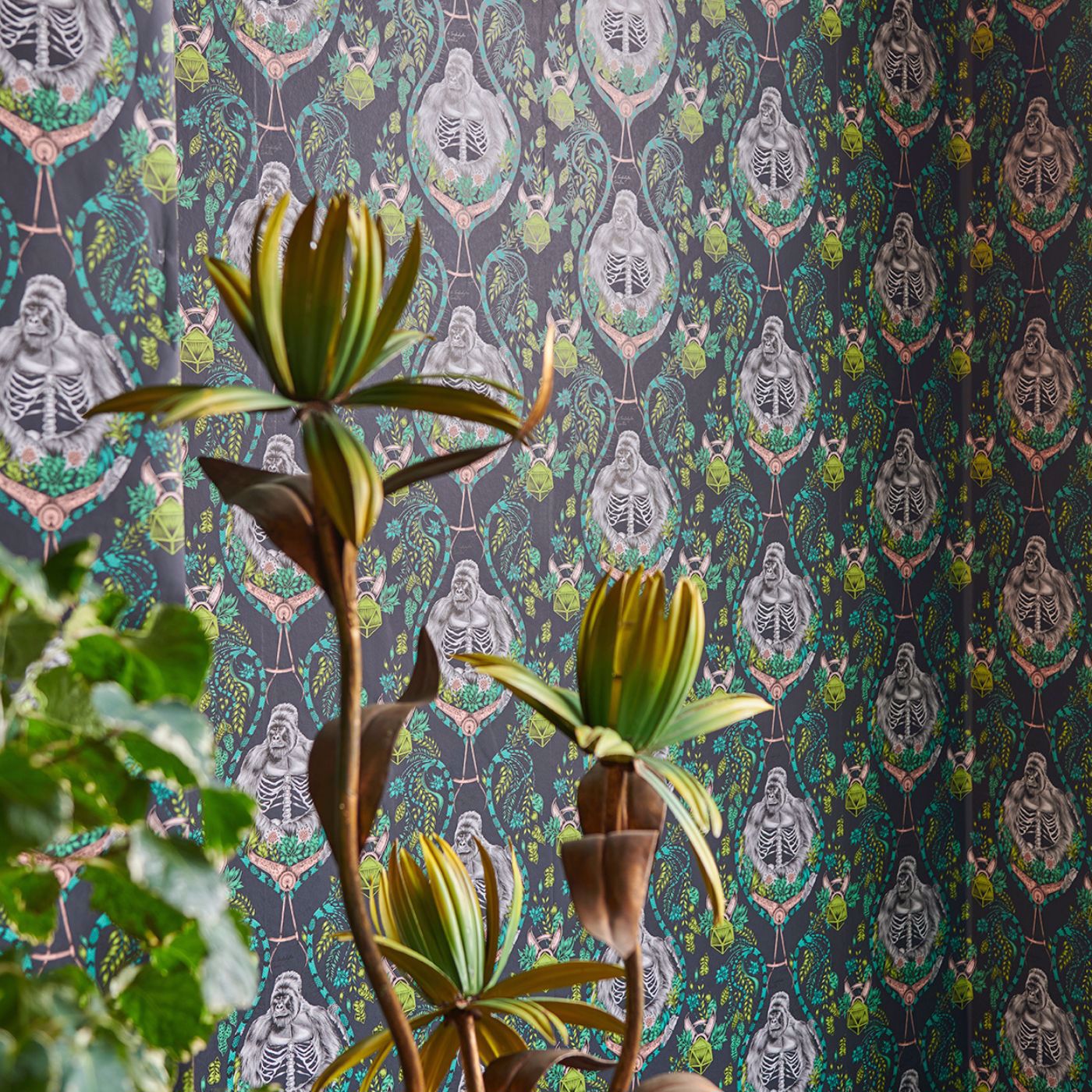 The Silverback Wallpaper, made in collaboration with Emma J Shipley, is a striking ode to our majestic cousins and a reminder to protect the natural world. The unique, hand-drawn design is inspired by the close evolutionary connections between humans and gorillas, and their endangered status. The rich lime, emerald greens, and pale pink accents are beautifully contrasted by the dark, off-black ground and charcoal pencil details. The luxurious Silverback wallpaper will add an air of jungle magic into your home and would make a stunning feature wall.