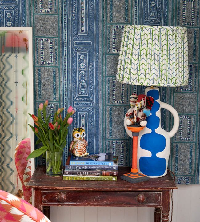 Small Way designed by Kit Kemp, is a graphic and bold fabric design. The small-scale, geometric print is an illusion, depending on how you plan to use it. Perfect for curtains as it heightens the room, lending depth to the space with its diagonal arrow-shaped pattern repeat.