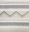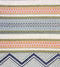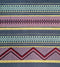 A large scale horizontal striped design with geometric elements of zig zag, lozenge and chequer board woven in viscose chenille, cotton and linen.