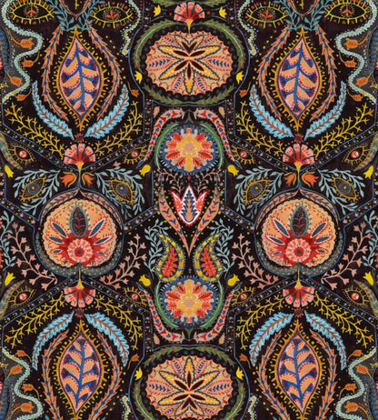 Alluding to the intricacy of the paisley and psychedelic prints of the 60s, Soul Sacrifice draws you into an enchanting world of colour and depth. Enticing the eye into the dark background, you get lost amongst the organic forms which entwine across the surface, lighting up the walls like stars in a night sky.