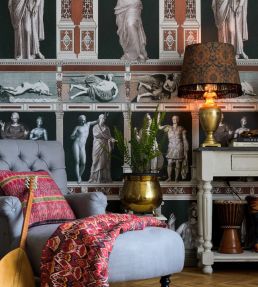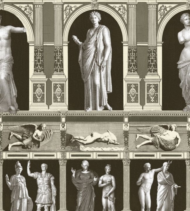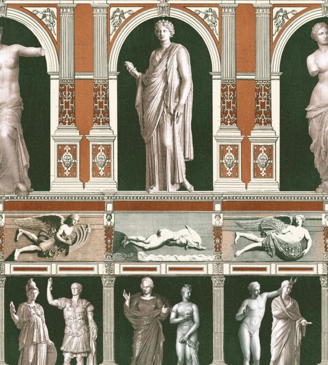 An impressive wallpaper design full of history and stunning details with illustrated famous statues after the originals that can be seen at Musee Royale, the French royal museum.