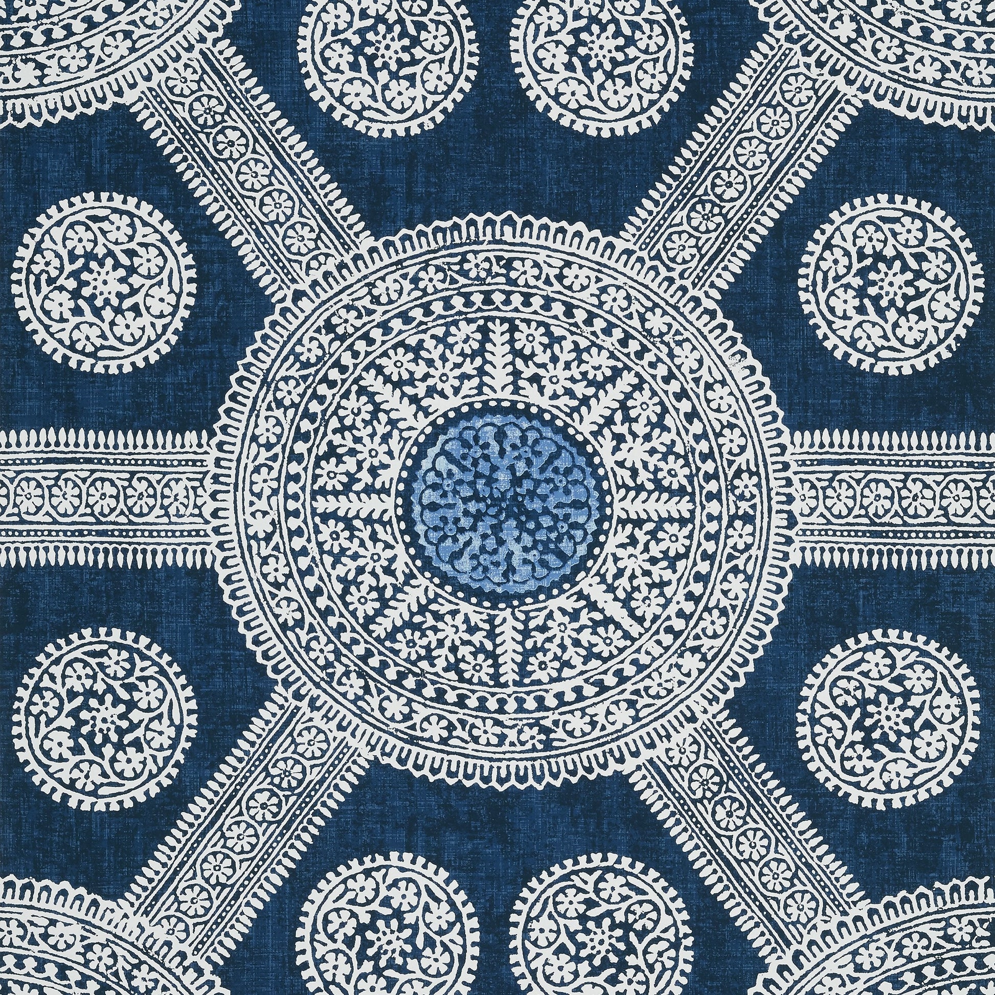 Inspired from a block print antique fabric document from India, the circular medallions in Stonington are laid out in a structured, symmetrical, but mazelike design.