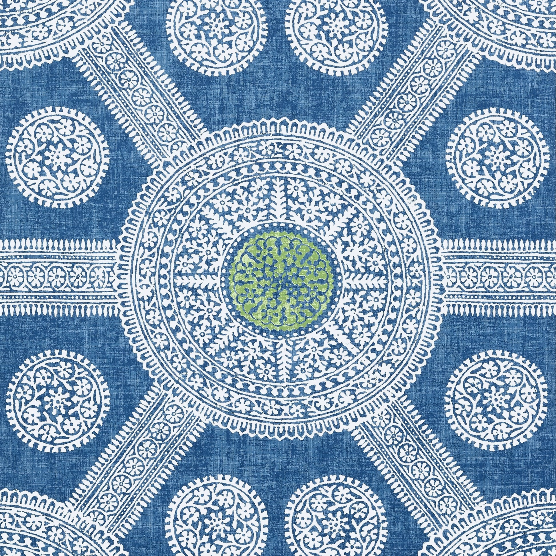 Inspired from a block print antique fabric document from India, the circular medallions in Stonington are laid out in a structured, symmetrical, but mazelike design.