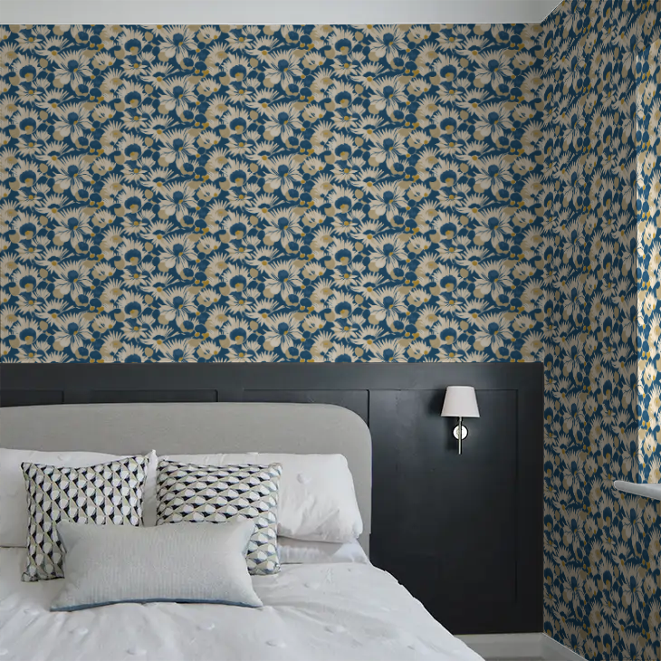Named after the Japanese word for waterlily, Suiren - meaning “sleeping lotus” - captures the fleeting beauty and delicate rhythm of these elegant flowers. Known for opening to the warmth of daylight and folding gently closed at dusk, the waterlily is a symbol of renewal, rest, and transience. This design presents a repeated motif of blooming waterlilies, their layered petals rendered in flowing watercolour with a hand-painted feel - the repetition brings structure, while the fluid petal shapes offer movement.