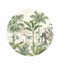 The Sunday Walk circle wall mural design features a majestic Indian elephant strolling through foliage dense gardens, while its riders relax in the shade of the howdah upon its back.