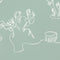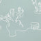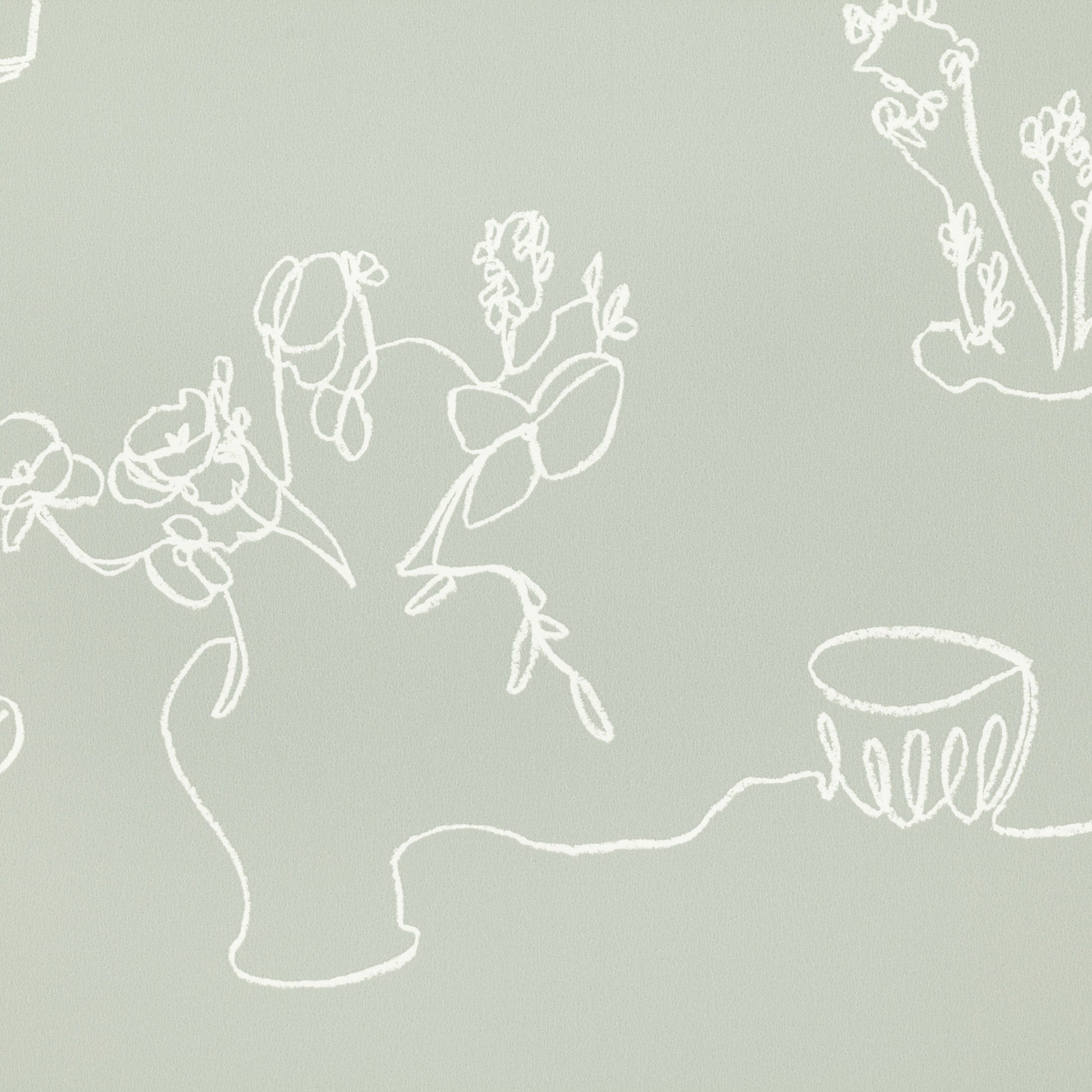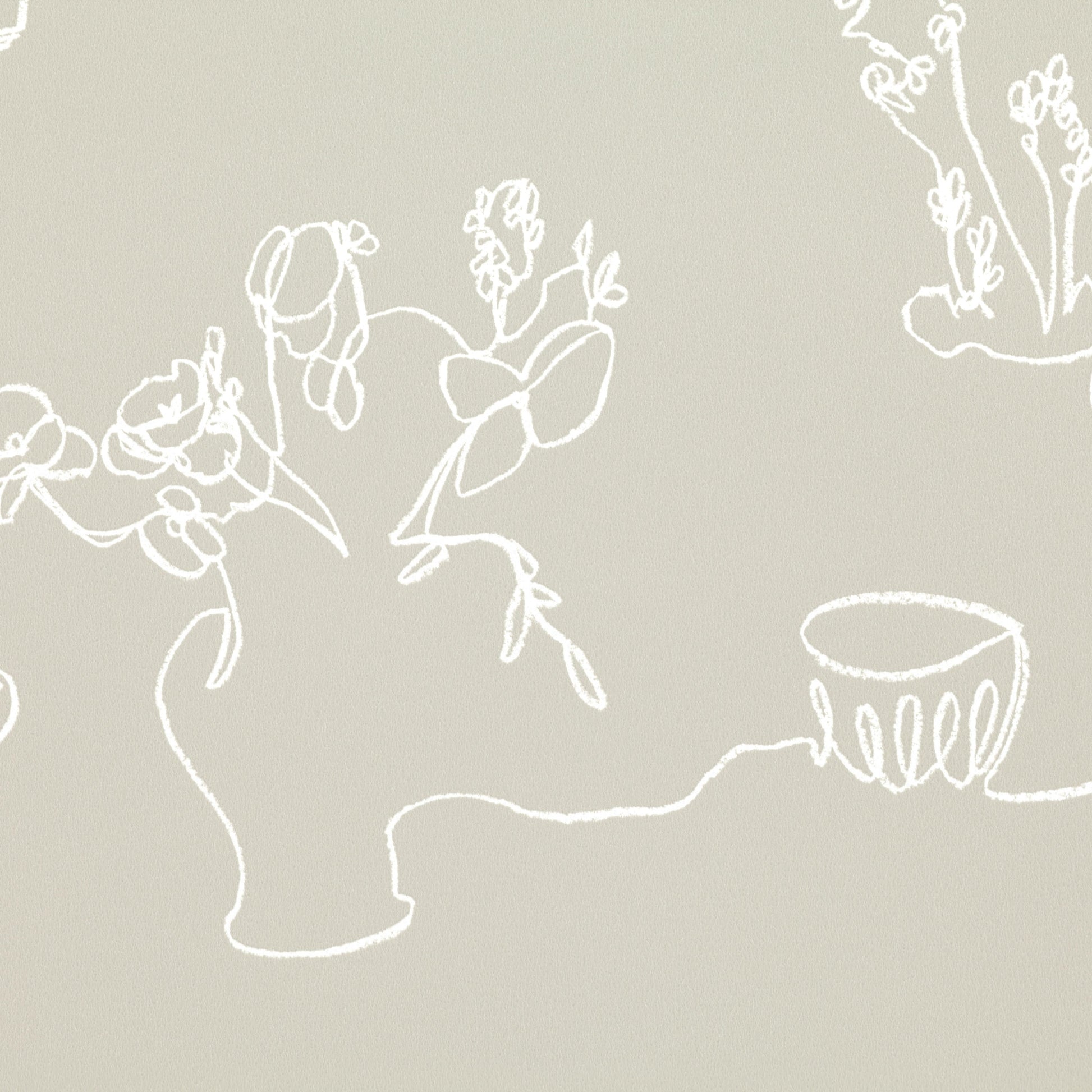 Inspired by a simple line drawing of a still life composition of vases and everyday objects, this modest print captures the fluidity and expression of the artist’s pencil as it loops with an unbroken line to create a continuous tabletop scene. The Tabletop design is printed on a smooth uncoated surface that gives a soft, chalky texture.