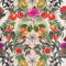 A colourful trellis of ribbons combined with citrus fruits and vivid hedgerow flowers. Named after Talavera de La Reina in Castile in mainland Spain, a city famed for its ceramics.