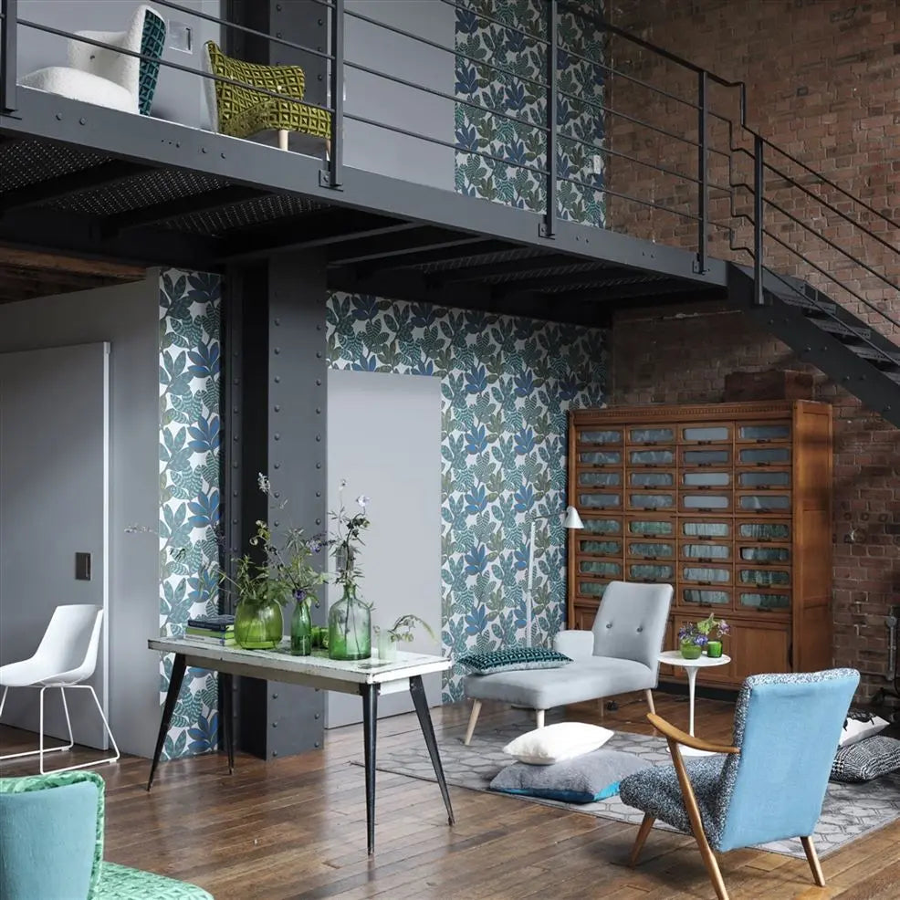 Graphic, bold leaf motifs in a dynamic scale are printed with a flexo and surface print method to emulate the feel of the hand painted original design.