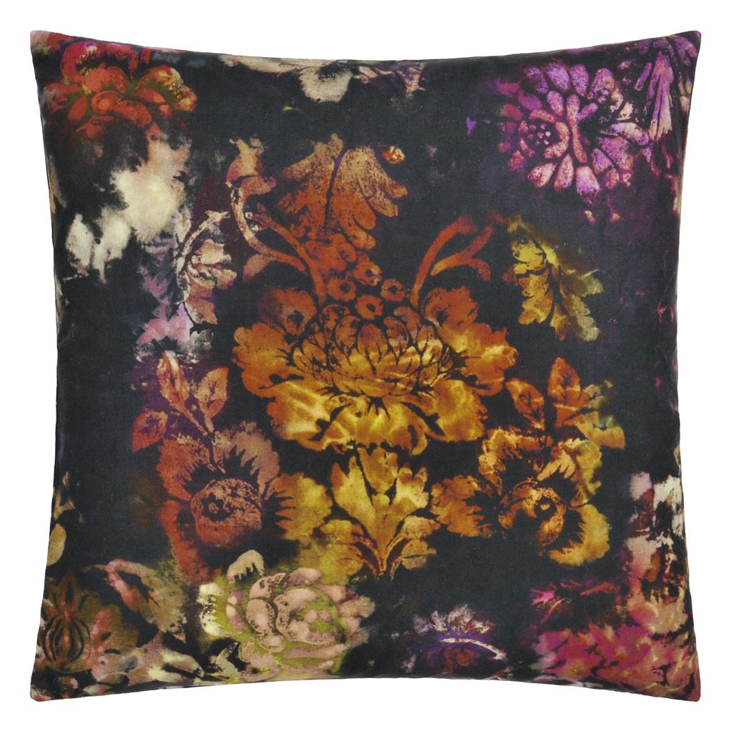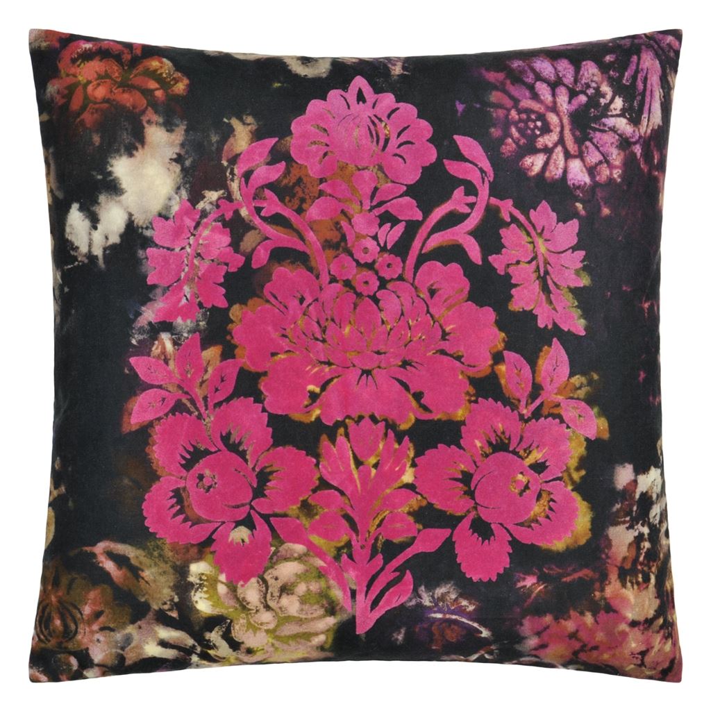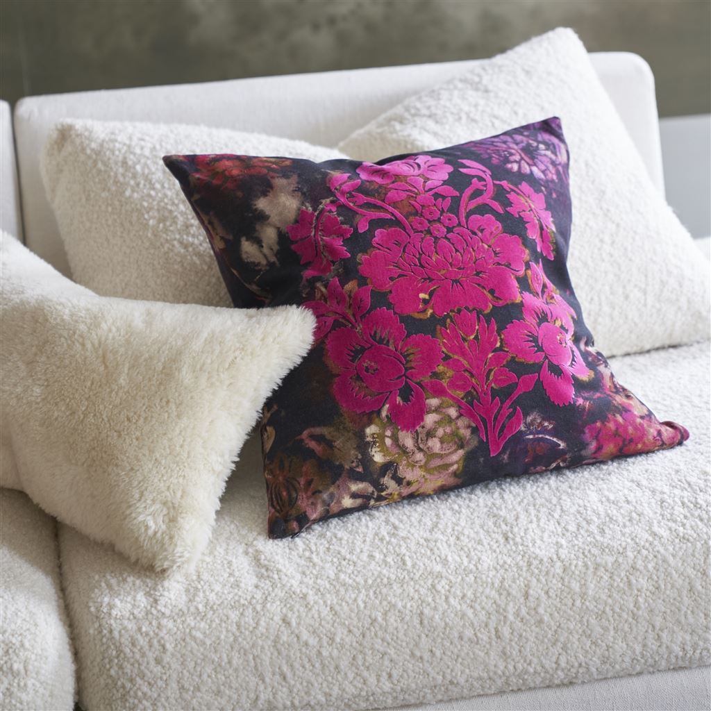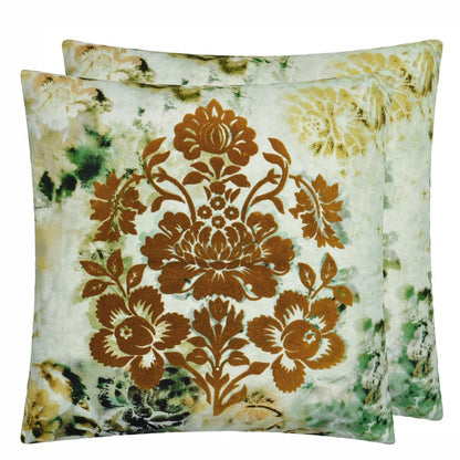A bold damask pattern is flock printed onto a decorative cotton/linen ground in this statement square decorative cushion. In glorious tones of cobalt and indigo blues with highlights of lime to complete your interior scheme. All our cushions come with a luxurious feather pad.