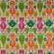 Traditional patterns revisited, this vibrant embroidery takes inspiration from the splendid ikats of Samarkand with a depth of colour achieved with tone on tone stitch-work that plays with the light when draped.
