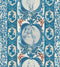 A pattern embodying the formality of fine portraiture, each hand sketched head is decorated by British florae, with delicate roses, thistles and ferns entwined in the extravagant frame. Stately coats of arms make up a subtle linear stripe alongside the illustrations, while minature painterly petals make up the supporting striped background.
