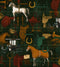 The Jockey is a visual list of how to stock your stable. Gleaming horse shoes, leather saddles, bridles, boots and carriages provide instruction in the arts of horse riding and grooming. With each item carefully depicted in turn of the 19th century-style shaded drawings, the pattern is coloured in rich, regal tones ranging from dark red to emerald green and earthy brown, with a backing of dark plaid.