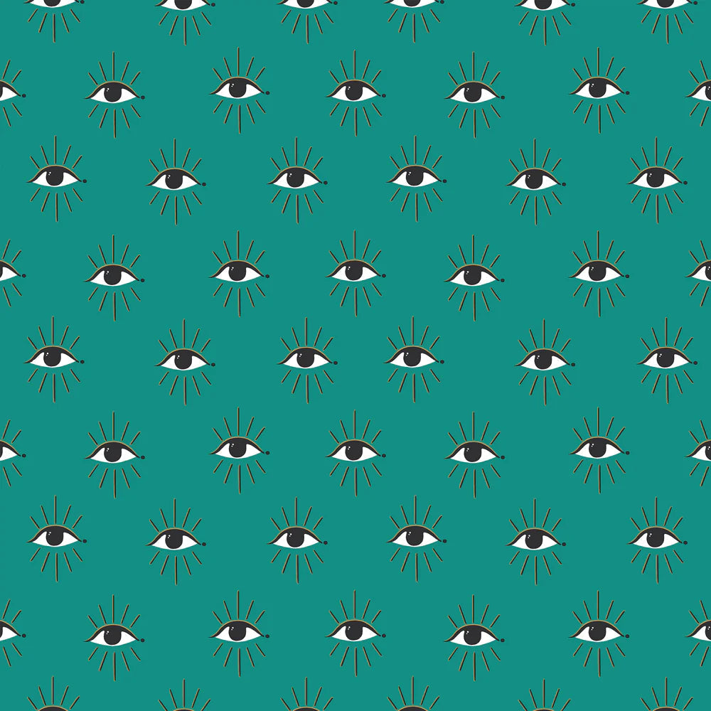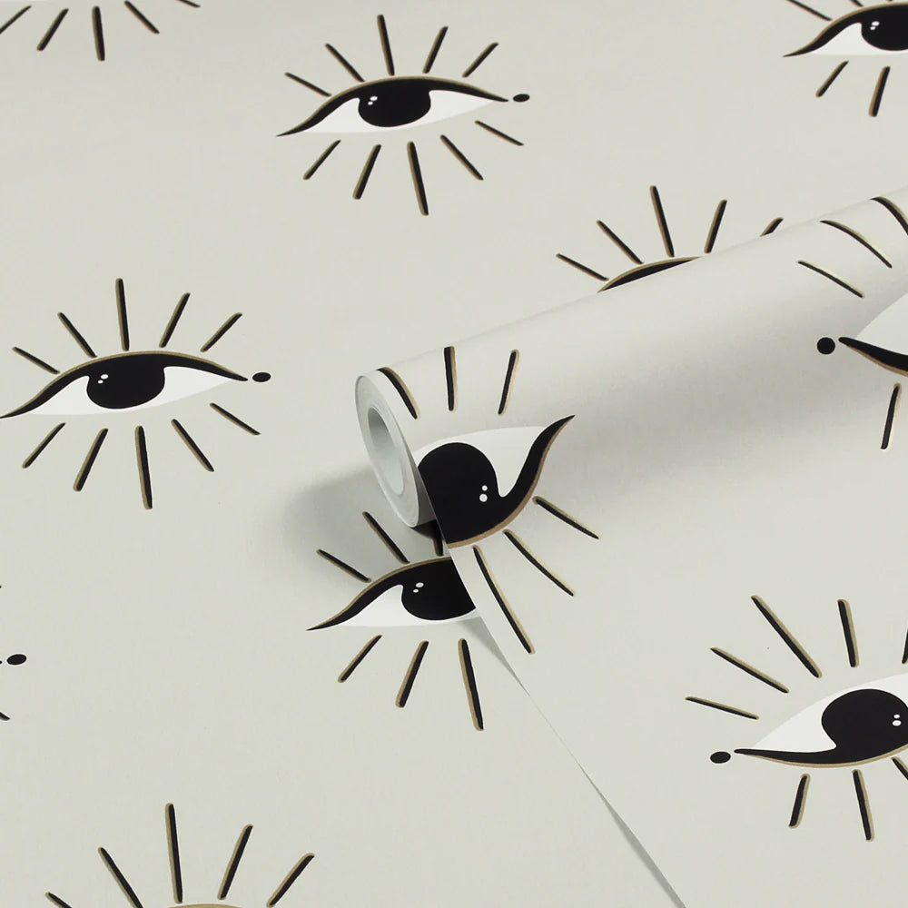 Add instant personality to your room with the Theia wallpaper featuring gold foil mystical watching eyes. This striking design will add a youthful energy to any room you choose to use it in. A soft hue sits behind the design, bringing a modern colour scheme into your home. This wallpaper is a paste the wall application; simply paste the wall, hang your paper, and leave to dry.