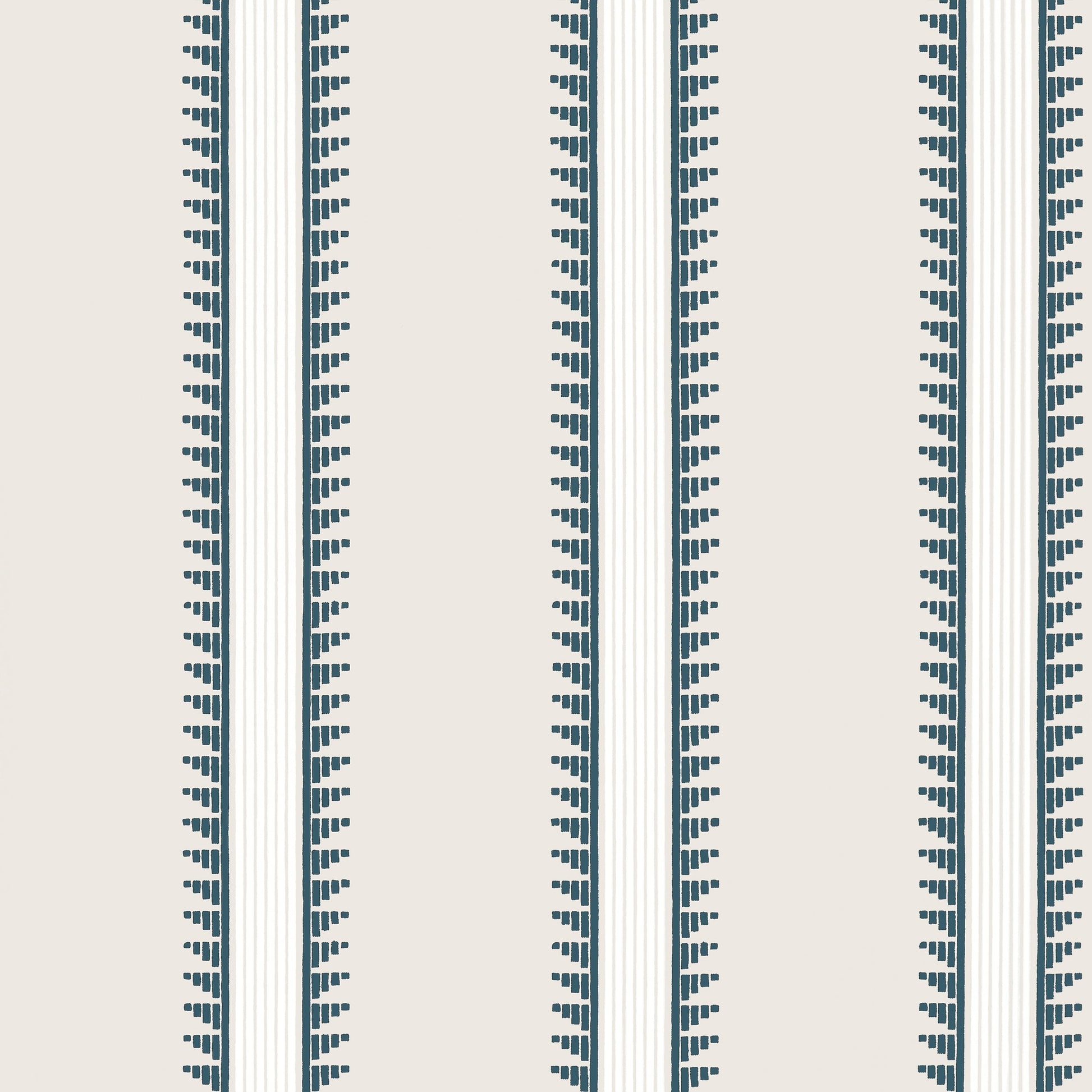 Trail Head is a modern variation of a classic stripe. It features a mesmerizing design of graphic lines and dashes.
