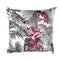 Tropical plants in all their beauty, Orchids, palm fronds and Cheese plants amongst other exotic blooms, add touches of hot pink for a cushion with a happy summer vibe.