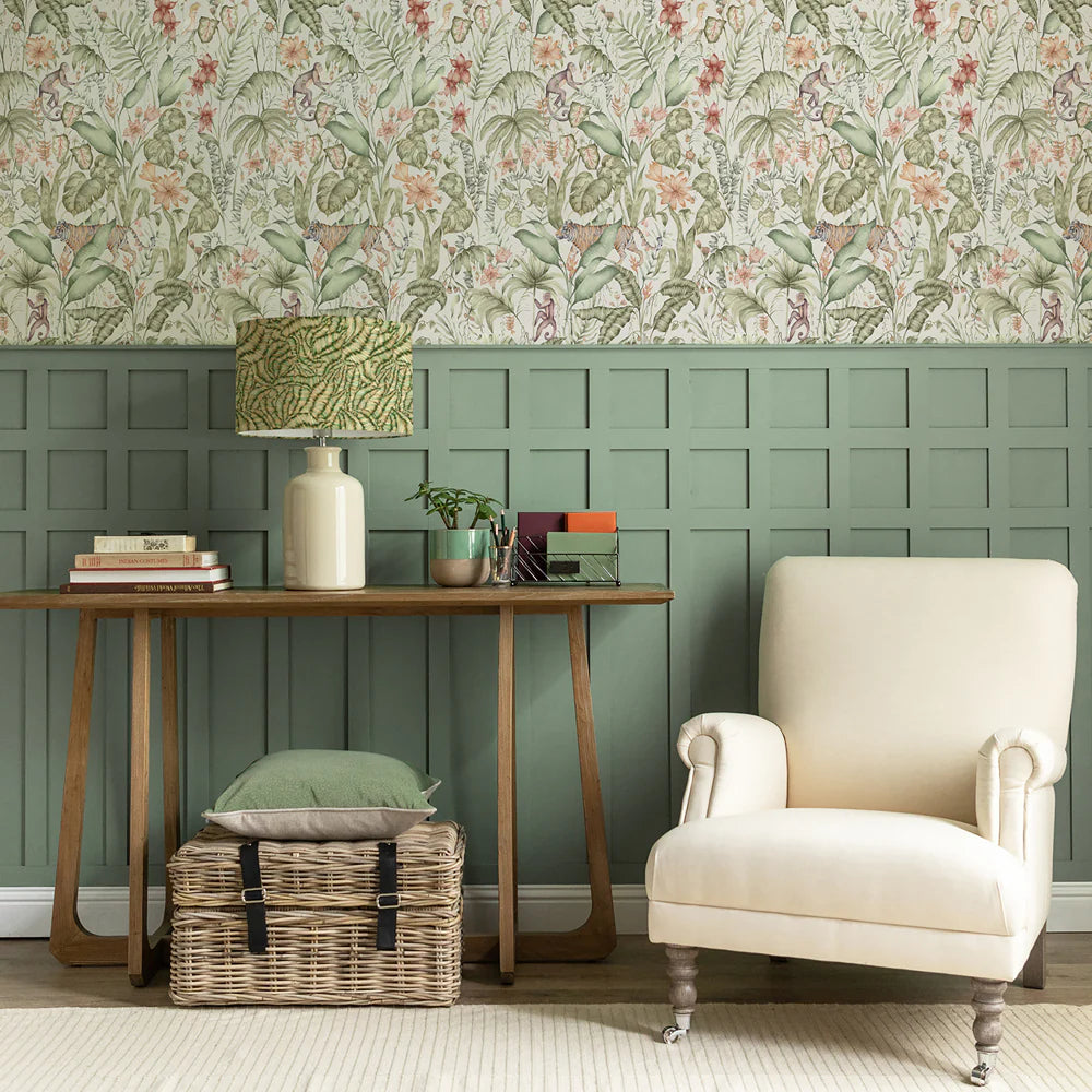 Transform your space into a serene escape with the Tropical Utopia Wallpaper. This hand-painted watercolour masterpiece, digitally printed on luxurious non-woven material with a matte finish, captures the vibrant beauty of nature. Featuring lush tropical foliage and camouflaged animals hidden within intricate landscapes, it invites moments of discovery and wonder. Perfect for those who appreciate artistry and detail, this wide-width wallpaper brings the outside in, creating a botanical haven within your home. Elevate your interiors with a design inspired by exotic jungles – a stunning backdrop for a life well-lived.