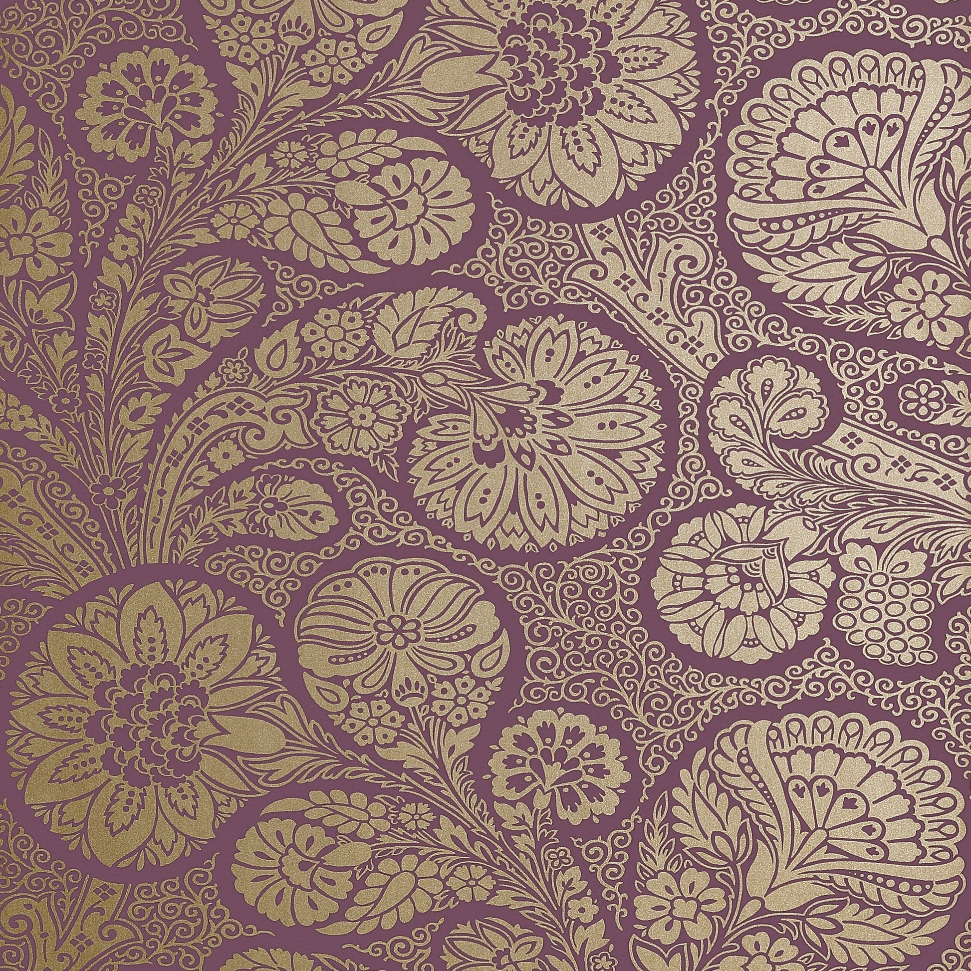 SKU: Troubadour Wallpaper - Metallic Gold on Plum - Thibaut - T13062