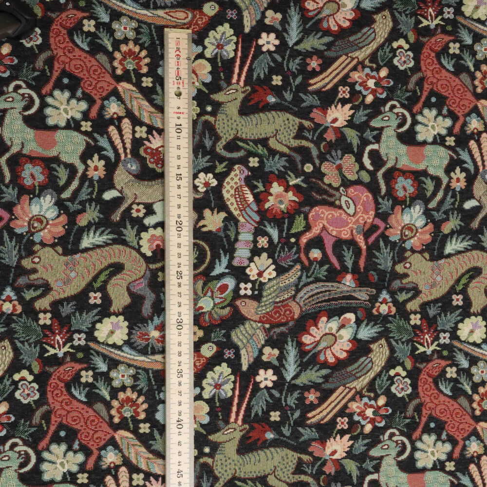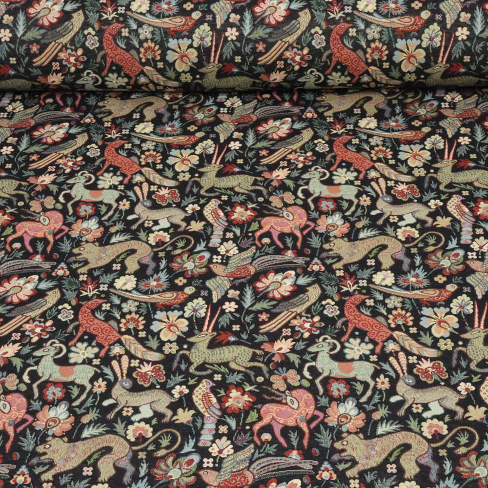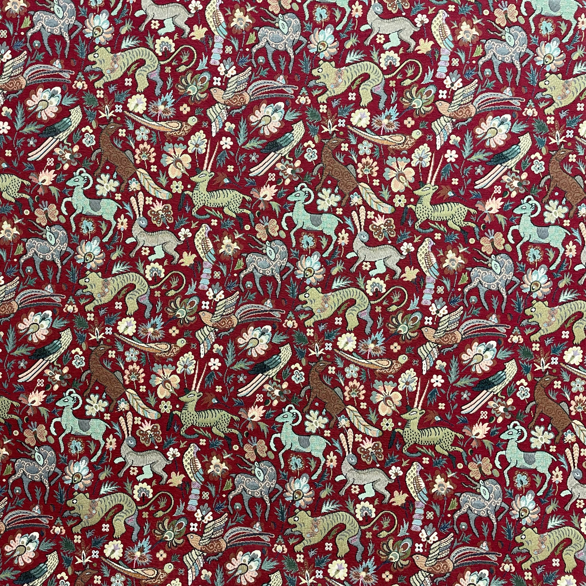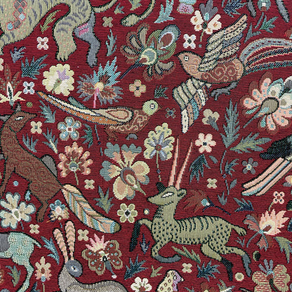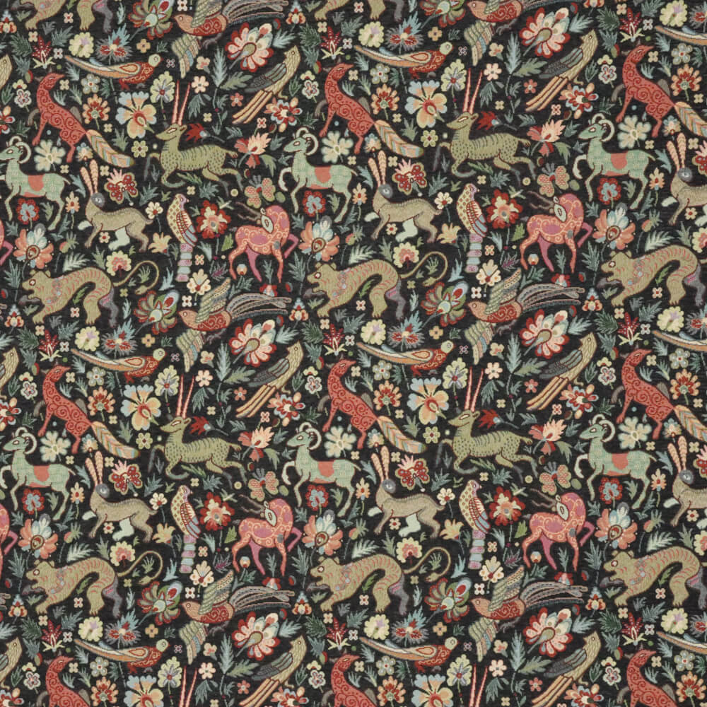 Inspired by the famous Gobelin fabrics, hand-woven tapestries once made near Paris. Tudor Forest is a stunning fabric that radiates quality and richness. Mythical like creatures of the forest play amongst a background of intricately woven flowers and trailing plants, its high quality detail and superior quality making it so beautiful you might as well hang it on the wall.