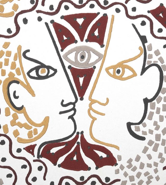 This all-over motif is inspired by the Jeunesse Franco - Allemande of 1963, a 36 cm diameter plate cut in white earth with black, yellow, blue, orange, green and red enamels.