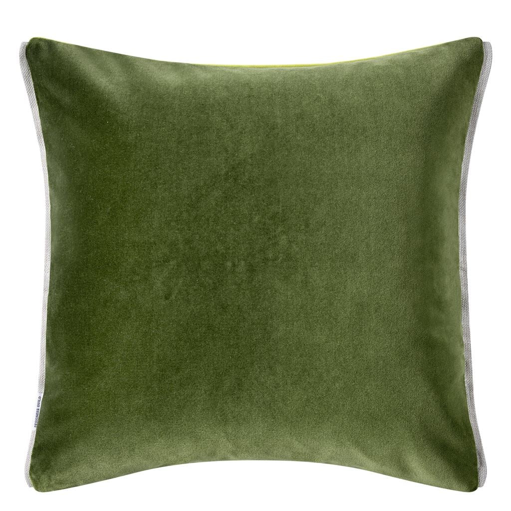 Our best-selling cotton velvet Varese is the feature in this luxurious square velvet cushion. Stylish lime green reversing to fir and finished with a Scala linen trim in natural, this elegant cushion completes your interior scheme perfectly. All our cushions come with a luxurious feather pad.