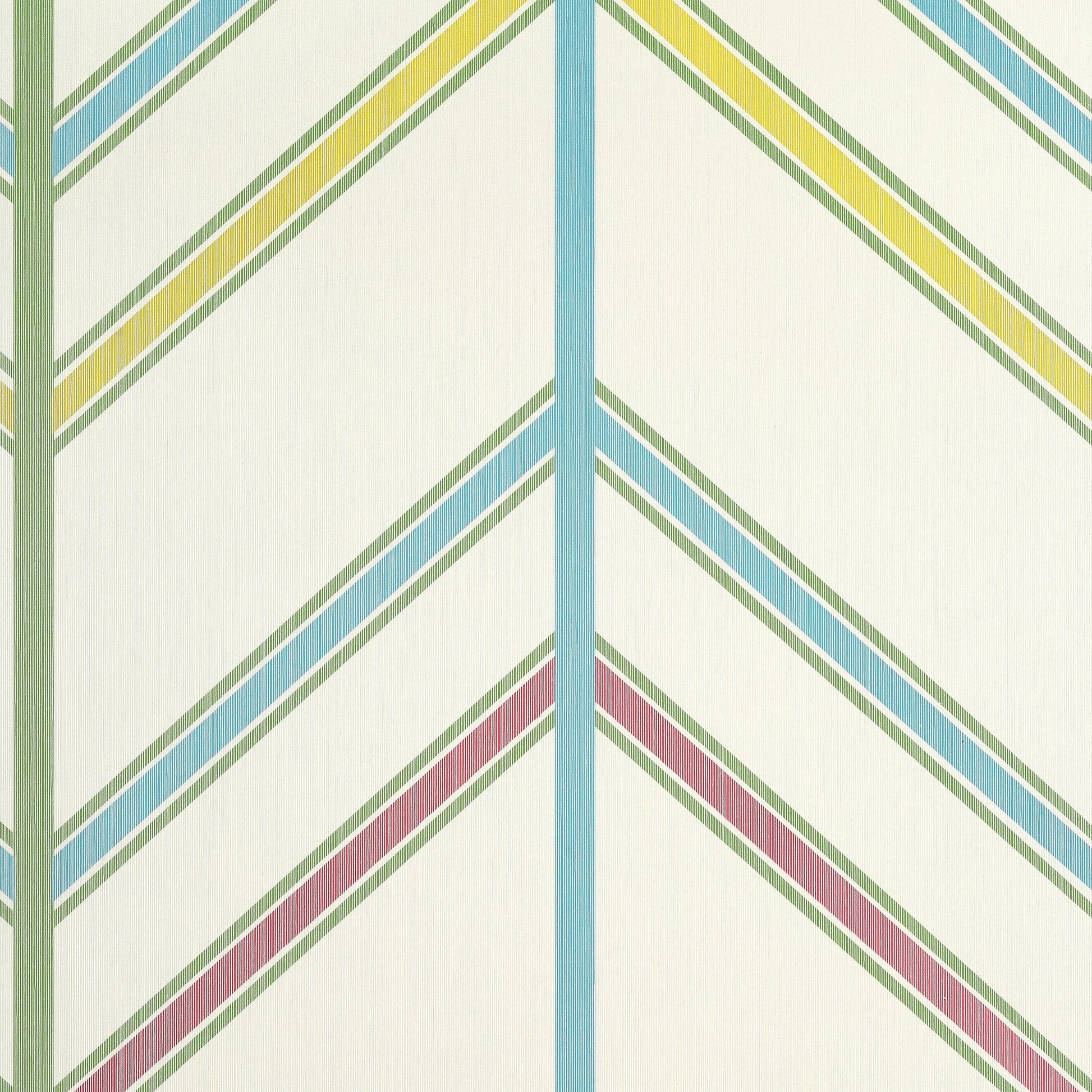 Transform your walls with the Ventura Wallpaper from the Canopy Wallpaper Collection by Thibaut. This stunning design features a large, multicolor chevron pattern, wonderfully scaled for maximum impact on your walls. The vertical string layer adds an extra layer of softness and dimension, creating a visually captivating and dynamic effect.