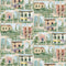 A repeating scene of traditional lakeside villas with stone colonnades adorned with foliage and climbing wisteria is set against a hillside backdrop, inspired by the beautiful lakes of Northern Italy.