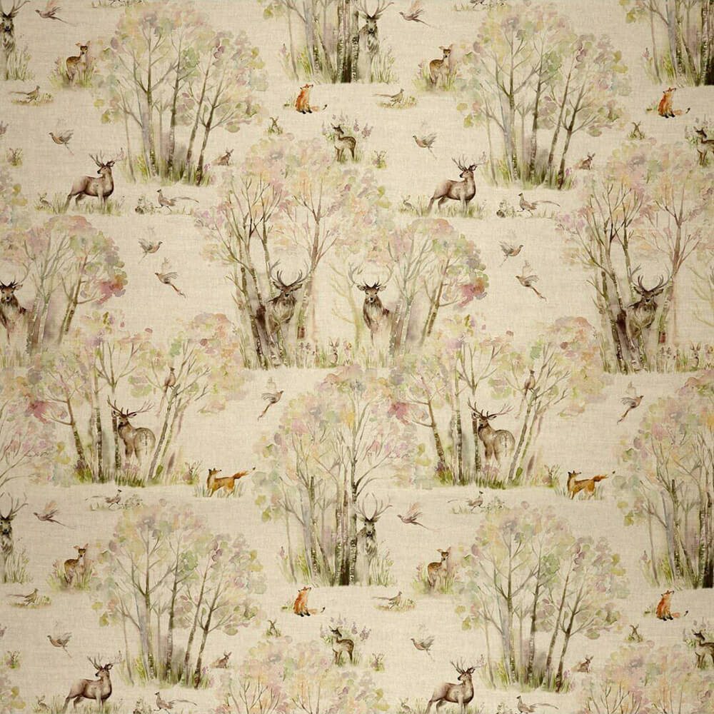 A lovely watercolour depiction of a day in Sherwood Forest featuring a range of inhabitants from foxes through to stag. Digitally printed on a superb quality linen blend fabric.