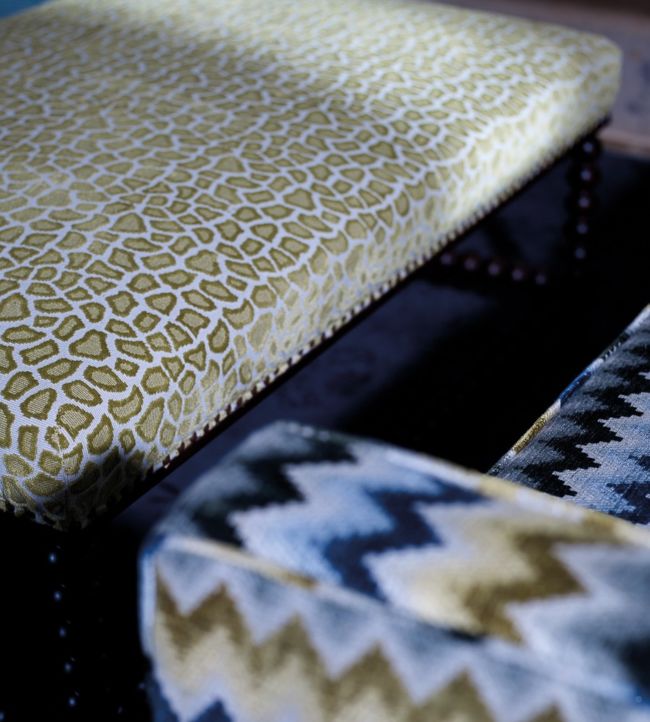 An ancient mosaic depicting the Anatolian leopard gave the idea for this cut and loop velvet pattern. Combining linen and cotton yarns, the texture of the pattern is enhanced by their different weave effects.