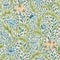 Tulips, frequently appearing in the Morris & Co. archive, are seen in this Huntington document, where leafy vines fill the ground and vertical scrollwork is interspersed with stylised flowers. Possibly the hand of John Henry Dearle, identifiable through the conical stamens of the central flowerheads, reminiscent of Golden Lily, Wild Tulip & Vine depicts, at its centre, a winding runner of daffodils to anchor the design, guiding the eye along a gentle, rhythmic path, drawing subtle parallels with Wandle. Wild Tulip & Vine is surflex printed.