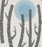 Woods is a bold graphic design featuring tree silhouettes framing a setting sun.