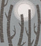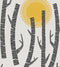 Woods is a bold graphic design featuring tree silhouettes framing a setting sun.