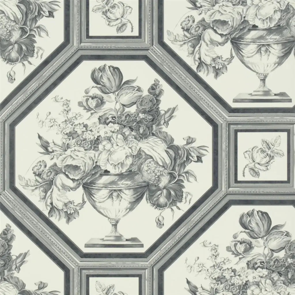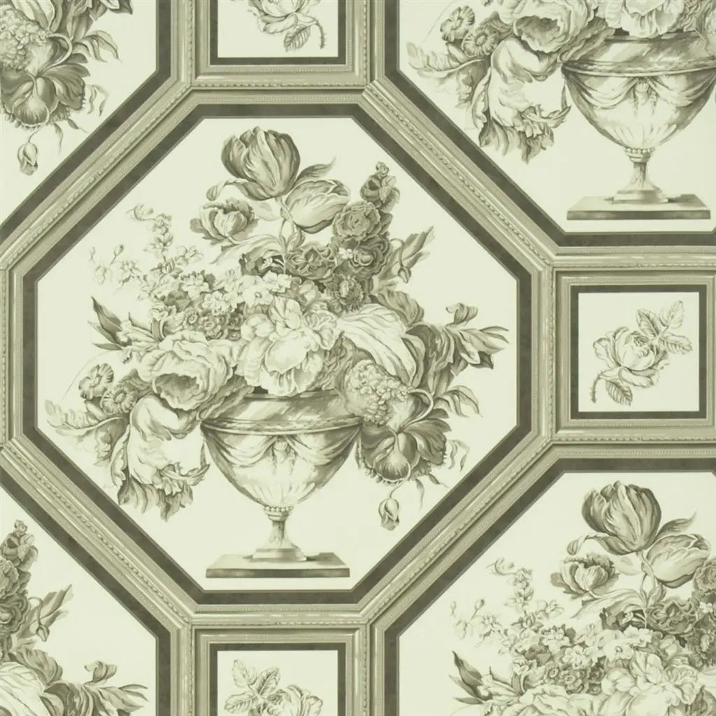 A striking classical wallpaper, filled with framed etchings of exquisitely drawn floral arrangements. Printed on a luxurious non-woven ground for easy hanging.
