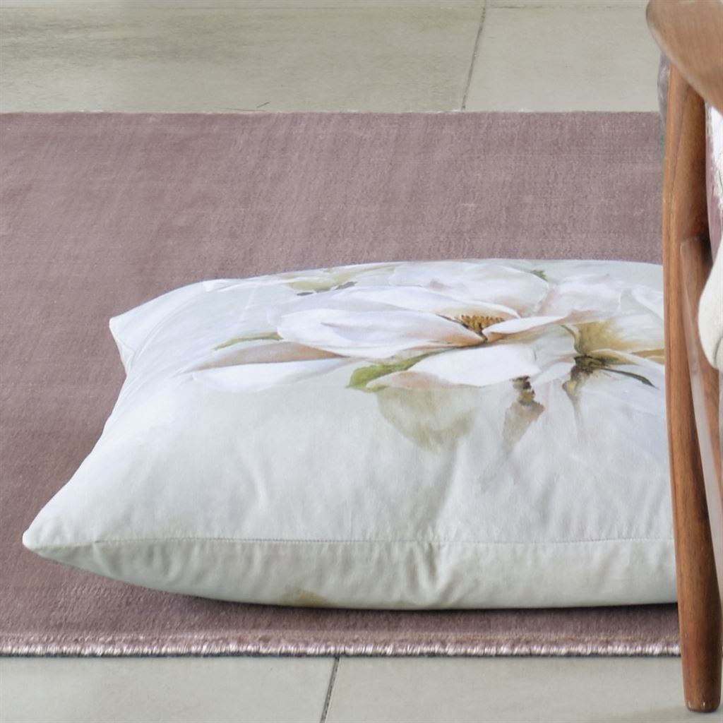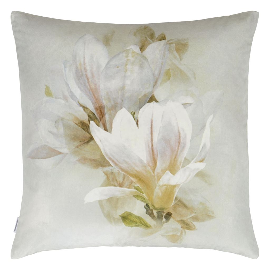 Large scale studies of magnolia flowers are stunningly depicted on this large square floral cushion. Digitally printed onto smooth velvet for a sublime luxurious feel. All our cushions come with a luxurious feather pad.