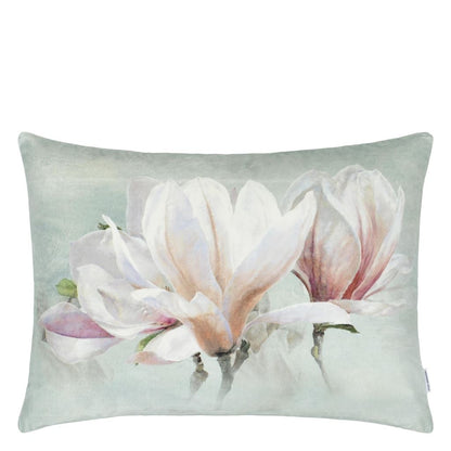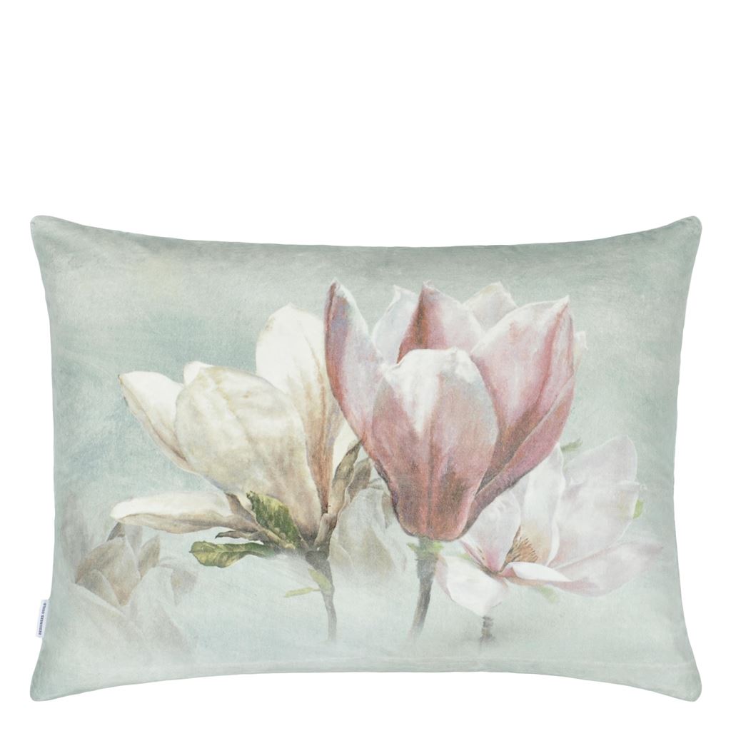 Large scale studies of magnolia flowers are stunningly depicted on this large, rectangular, floral cushion. Digitally printed onto smooth velvet for a sublime luxurious feel. All our cushions come with a luxurious feather pad.