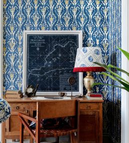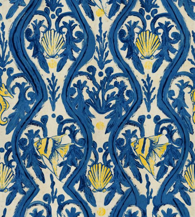 Highlighted in traditional deep-sea blue and fresh-lemon yellow shades, the Zakynthos wallpaper brings together all the marine symbols in a beautiful, rich pattern. Authentic Greek vibes ooze through the details of sea tangle and delicate fish.