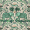 The Zamebezi Linen Fabric features an array of magical creatures, with leopard-spotted elephants taking centre stage, surrounded by leaping gazelles, birds of paradise and curious foliage that add a signature twist to this African fantasy design. The soft jade green elephants and darker teal details pop against the pale sand-coloured background, on the beautifully textured linen base. The Zambezi Linen Fabric is from our Wilderie collection, made in collaboration with Clarke & Clarke, and is perfect for upholstery, drapery, cushions, and roman blinds, adding an air of maximalist magic to your interior.