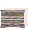 This contemporary rectangular cushion features a textural front with chunky multi coloured space dyed chenille yarn woven in horizontal banded stripes with a black and white woven ground. Reversing to Brera Lino pure linen in alabaster. Material: Front = [43% Co, 18% Vi,, 15% Pa, 7% Wo, 7% Co,, 4% Pl, 4% Pc, 2% Pl Recycled], Reverse = [100% Li]